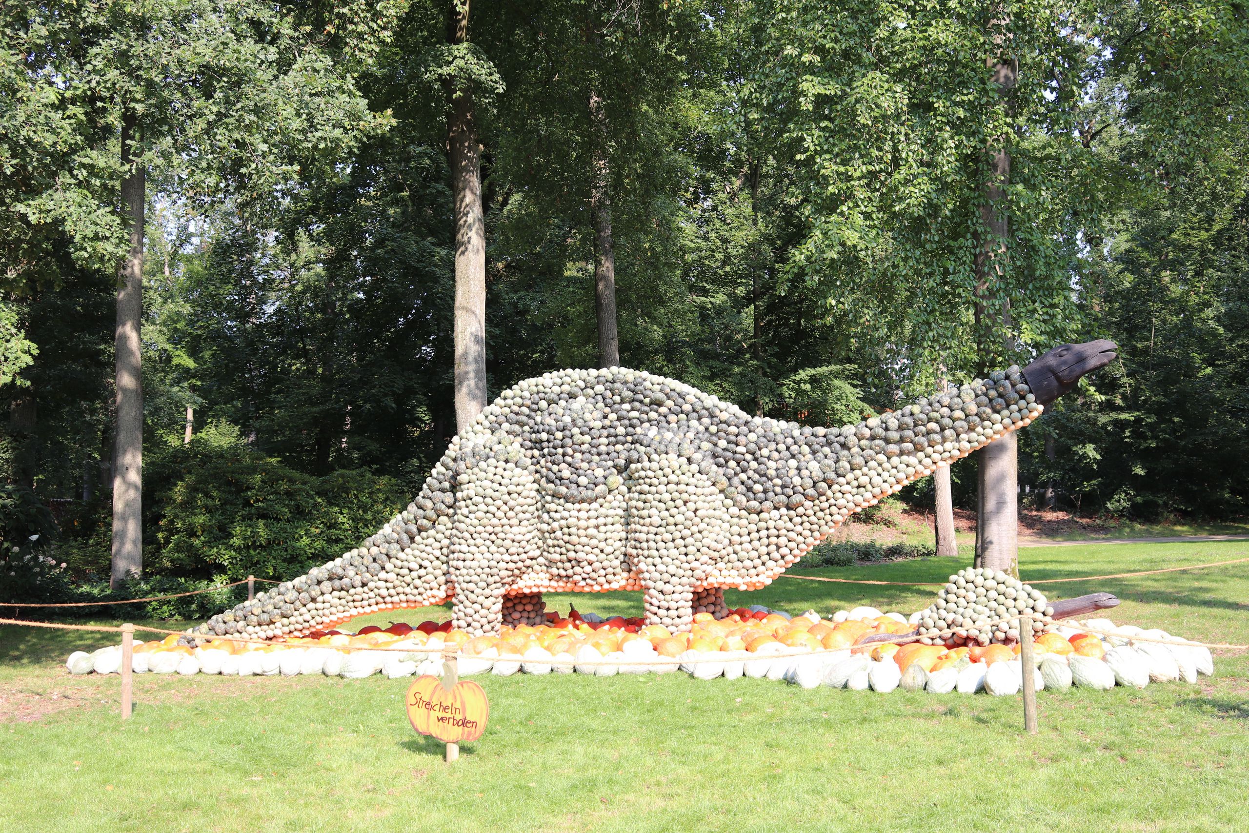 Sieben Wochen lang könnt Ihr dort zehn imposante Kürbis-Dinosaurier bestaunen, die aus tausenden einzelnen Kürbissen zusammengesetzt sind. Darüber hinaus erwartet Euch eine spannende Ausstellung mit 250 Kürbissorten aus aller Welt und tolle Wochenendveranstaltungen für die ganze Familie.