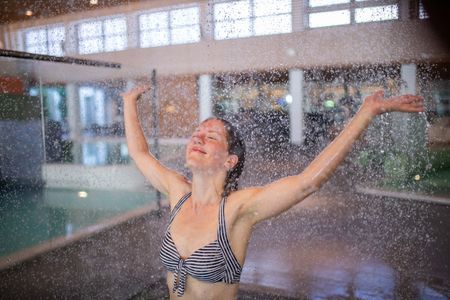 Ziemlich geschafft von der Tour entschieden wir uns dann für den Nachmittag zu einem Entspannungsprogramm in der VitaSol Therme. Momentan haben dort nur Genesene, Geimpfte oder Getestete Zutritt, aber eine Anmeldung für die Therme und die Sauna ist nicht nötig. Auf der Homepage konnten wir sogar die aktuellen Besucherzahlen und die Auslastung sehen. Testen lassen konnten wir uns schnell und unkompliziert direkt am Testzentrum der VitaSol Therme und dann war der Eintritt mit dem negativen Testergebnis kein Problem mehr. Aufgrund der Corona Verordnungen, gab es natürlich noch kleinere Einschränkungen, was aber eher zu einem guten Gefühl im Sinne von mehr Sicherheit beiträgt. Beispielsweise mussten Abstandsregeln auch in den Becken und der Sauna eingehalten werden, sodass man manchmal etwas warten musste. Das Warten lohnte aber, denn in den Becken warteten verschiedene Entspannungsmöglichkeiten auf uns. Vom intensivsolehaltigen Becken in dem man sich schwebend treiben lassen konnte, bis hin zu mehreren Sprudelliegen und Schwallduschen, die einem eine kleine „Massage“ verpassten. Für eine Anwendung in der WellnessLounge war spontan leider keine Zeit mehr. Dafür hatten wir es uns zusätzlich in der Soleinhalation gemütlich gemacht. Die Dampfkabine hat ein eigenes kleines Minigradierwerk. Für den Hunger zwischendurch bot uns das KochWerk der VitaSol Therme eine ausgewogene Stärkung. Hier erwartete uns ein vielfältiges Angebot an Speisen und Getränken. Insgesamt konnten wir den Aufenthalt sehr genießen und uns von der anstrengenden Radtour erholen.