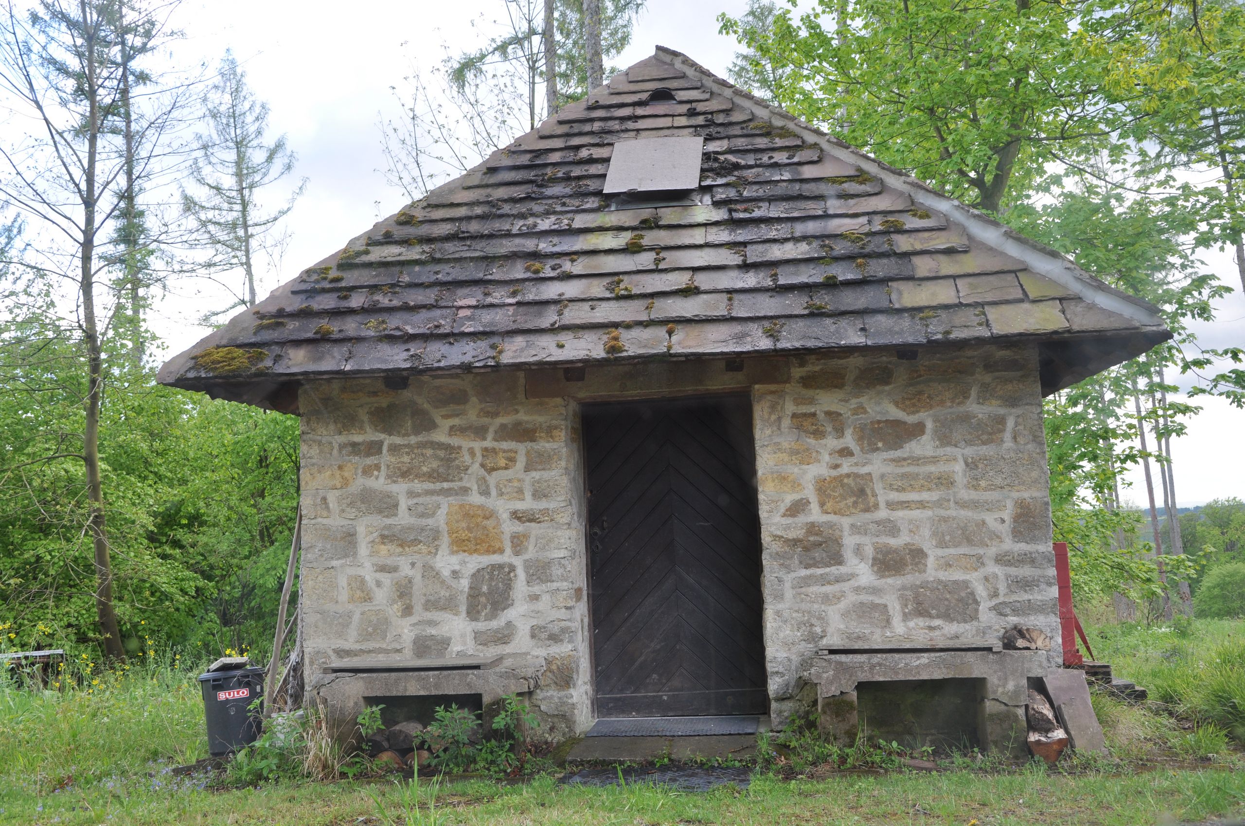Auf dem Weg zu diesem tollen Aussichtspunkt kommt man an einer bizarr aussehenden Buche und an einer kleinen steinernen Hütte, dem sog. Waldschlösschen, vorbei.