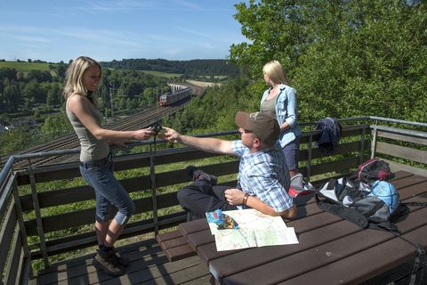 Los geht’s: Der Viadukt Wanderweg in Altenbeken begeistert Eisenbahn- und Naturfreunde gleichermaßen.