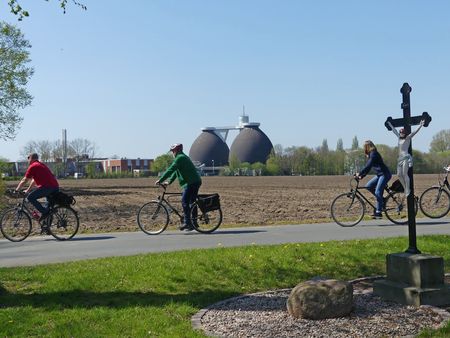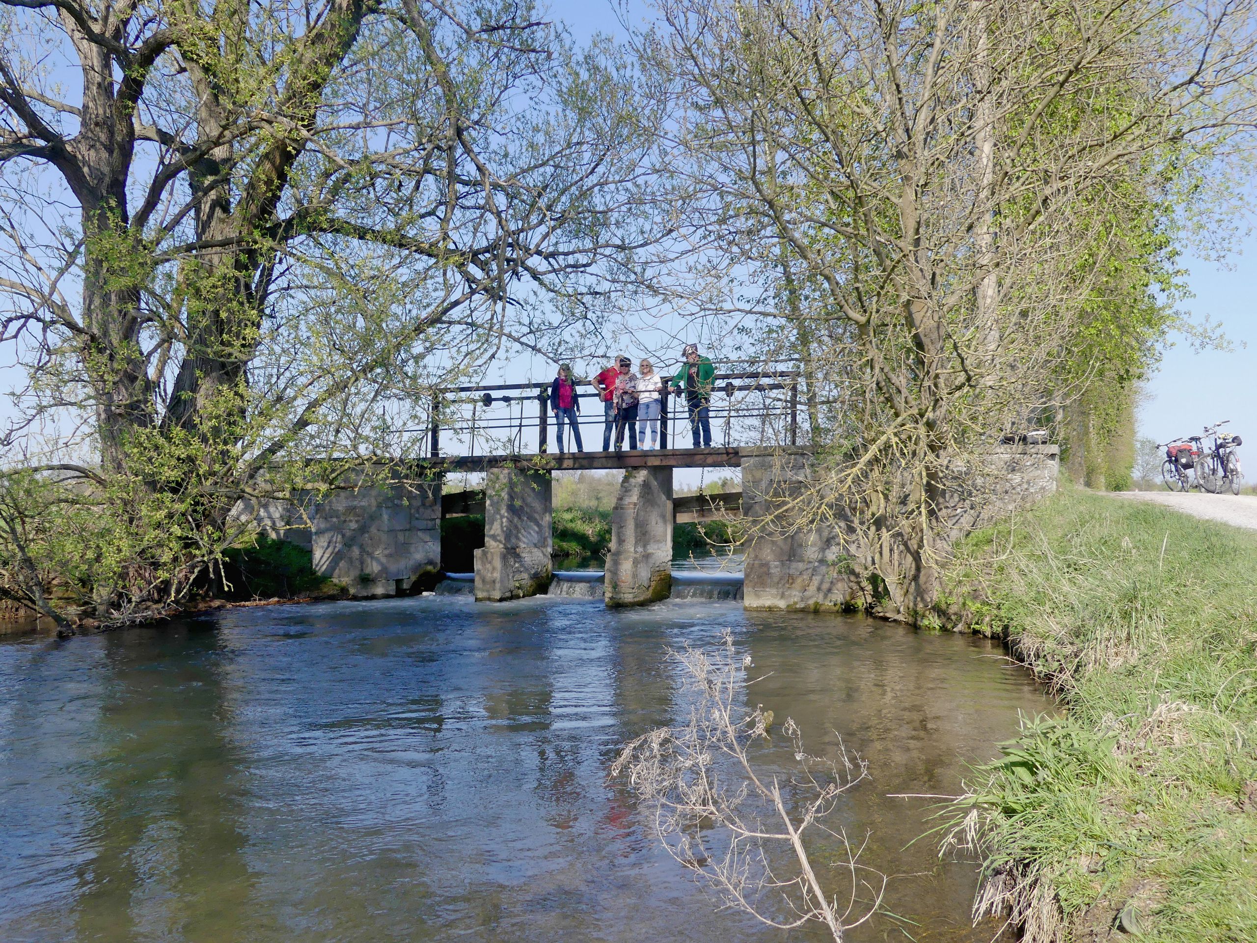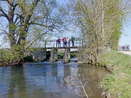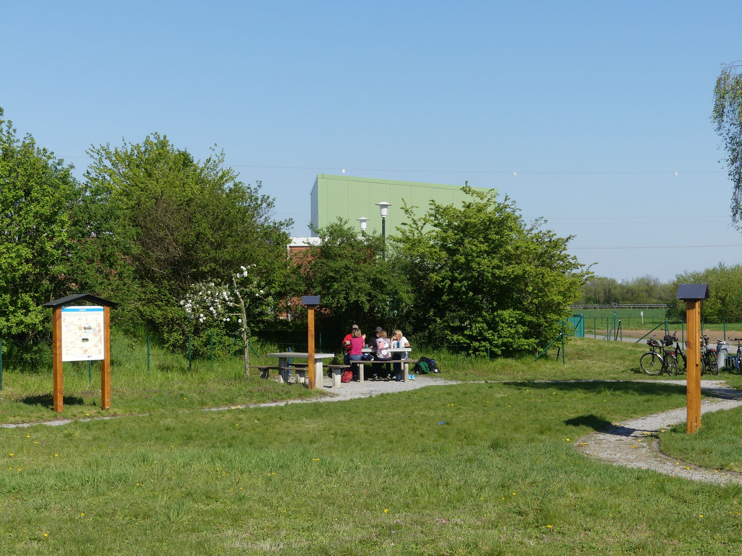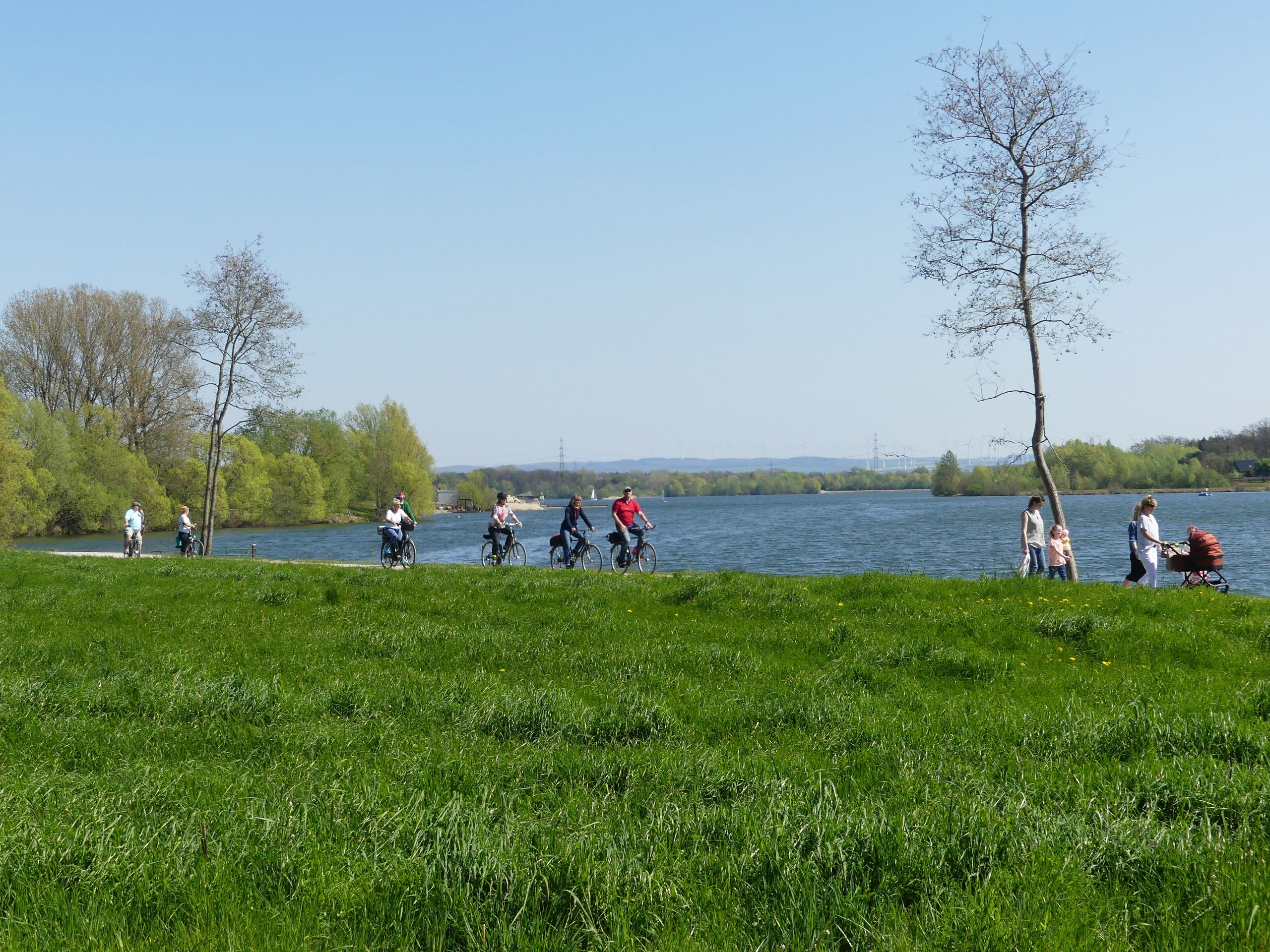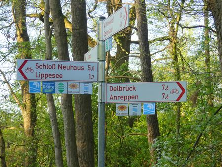 Steigungsfrei und verkehrsarm soll sie sein, die WasserRoute. Und mit nur 18 Kilometern recht kurz. Außerdem soll man an „Wasserstationen“ vorbeikommen. So recht vorstellen konnten wir uns darunter nichts. Also machten wir die Probe aufs Exempel. Wir, das sind drei Paare im jungen Seniorenalter, die bis auf eine Ausnahme noch „ohne Strom“ unterwegs sind. Der 1. Mai war der ideale Tag: Das Wetter präsentierte sich sonnig, aber nicht zu warm. Wir hatten allesamt frei und keine anderen Pläne. So trafen wir uns kurzentschlossen für unsere Feiertags-Rundfahrt am frühen Nachmittag an der großen Übersichtstafel am Lippesee im Paderborner Stadtteil Sande.