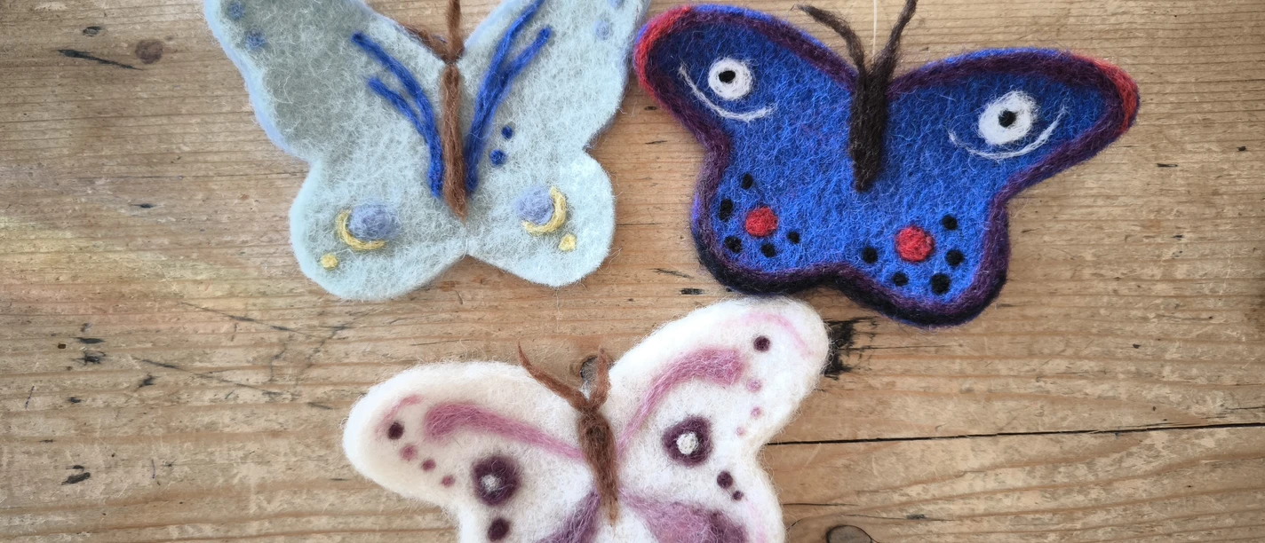 Blumen und Schmetterlinge aus Filz