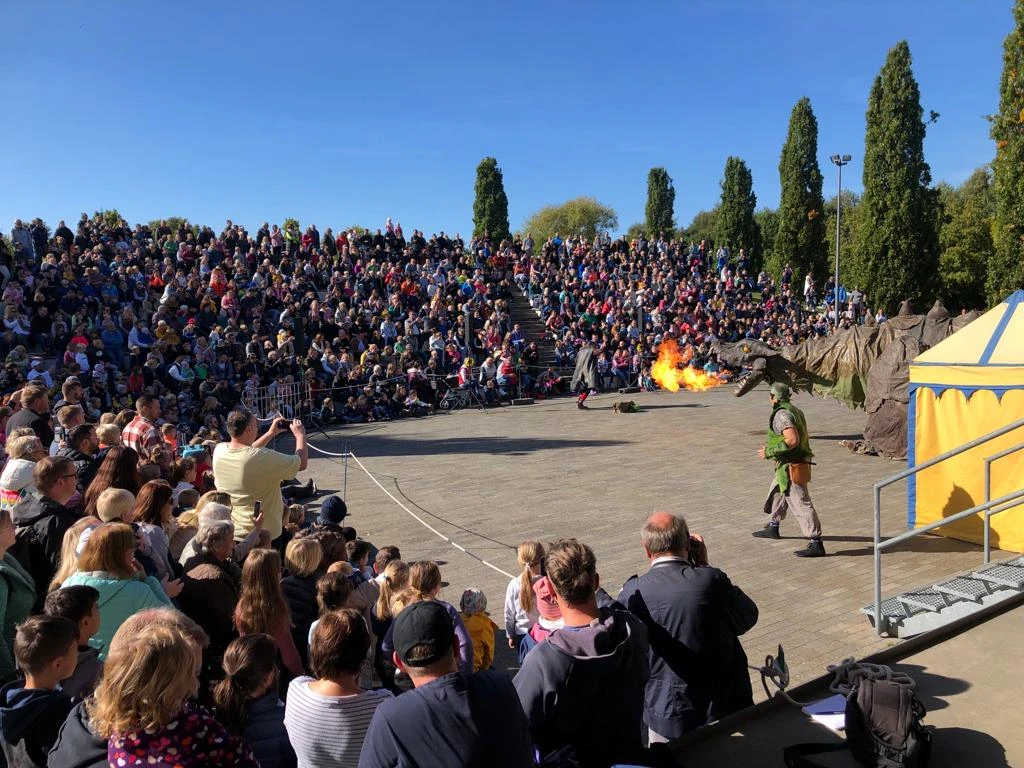 Jedes Jahr aufs Neue verzaubert Fangdorn viele tausend Besucher, die sich die Hauptattraktion des Drachenfestes nicht entgehen lassen wollen. Gespannt und fasziniert verfolgen die kleinen und auch großen Gäste jedes Mal, wie Fangdorn Flammen speit und Rauch aus seinen Nüstern pustet, wie er schnauft, brüllt oder knurrt, mit seinem Dornenschwanz peitscht, mit den Flügeln schlägt oder auch lieblich mit den Augen zwinkert. Das riesige, fast drei Meter hohe und äußerst imposante Fabelwesen ist auch in diesem Jahr mehrmals beim Drachenfest zu sehen. Die drachenstarken Shows starten um 11, 13, 15 und 17 Uhr in der Volksbank-Arena