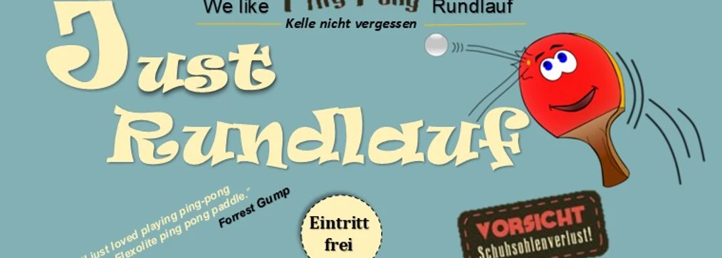 Der Feiertagsspeck muss weg. Auf geht´s zum Tischtennis Rundlauf. Schläger gewetzt, Schuhe geputzt, Pulswärmer gewaschen; noch rasch Deo unter die Achsel und gib ihm. Wir rennen um die Platte nach internationalen Regeln. Nicht vergessen. Der Gewinner des jeweiligen Endspiel erhält einen Schnaps/Likör seiner Wahl.