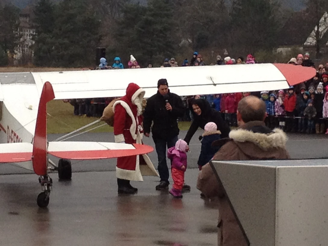Der Nikolaus landet mit dem Flugzeug auf dem Flugplatz Bielefeld und bringt Geschenke für die Kinder.
