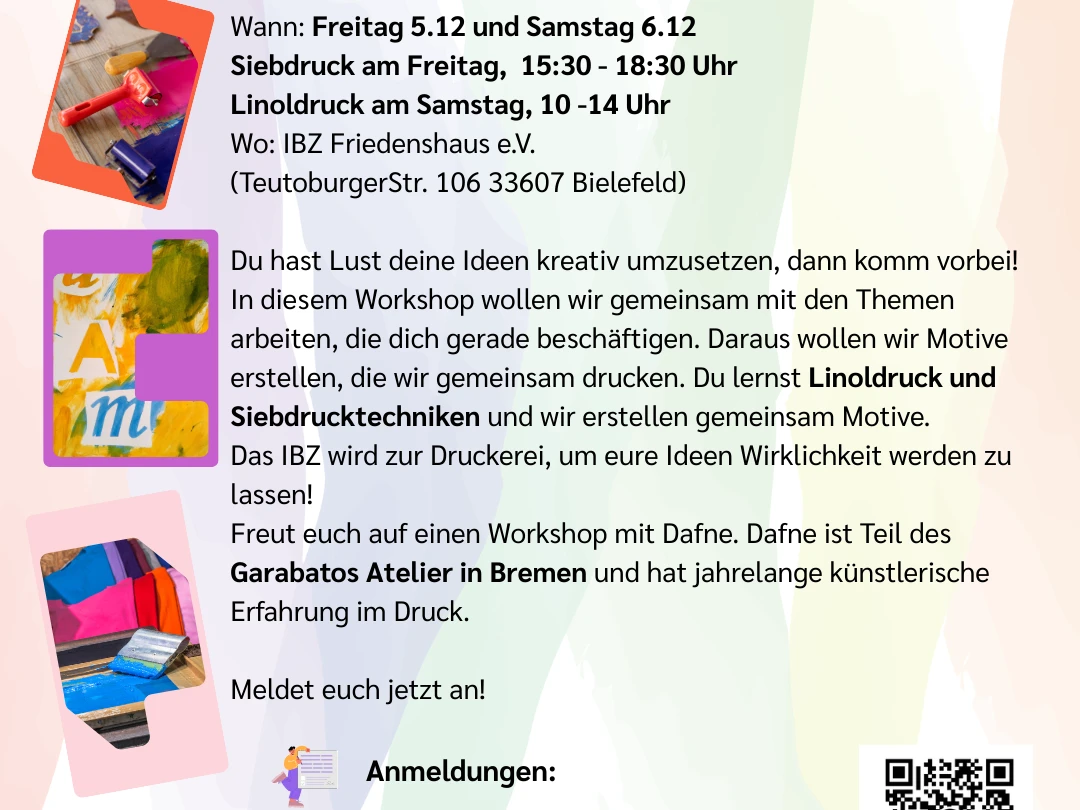 Das alles findet im IBZ Friedenshaus e.V. (TeutoburgerStr.106 33607 Bielefeld) statt.