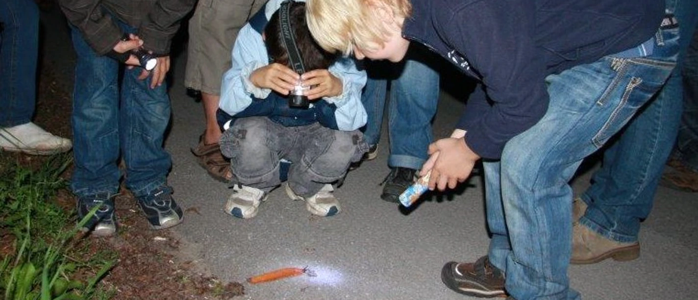 Wir wandern von der Biostation aus in die Nacht hinein. Die nachtaktiven Tiere sindunsere Vorbilder, wenn wir bei spannenden Spielen und dem beliebten Lichterpfad unsere Sinne fordern. Denn auch die anderen Sinne helfen uns bei der Orientierung, wenn wir nur wenig oder gar nichts sehen. Es braucht nur etwas Vertrauen zur eigenen