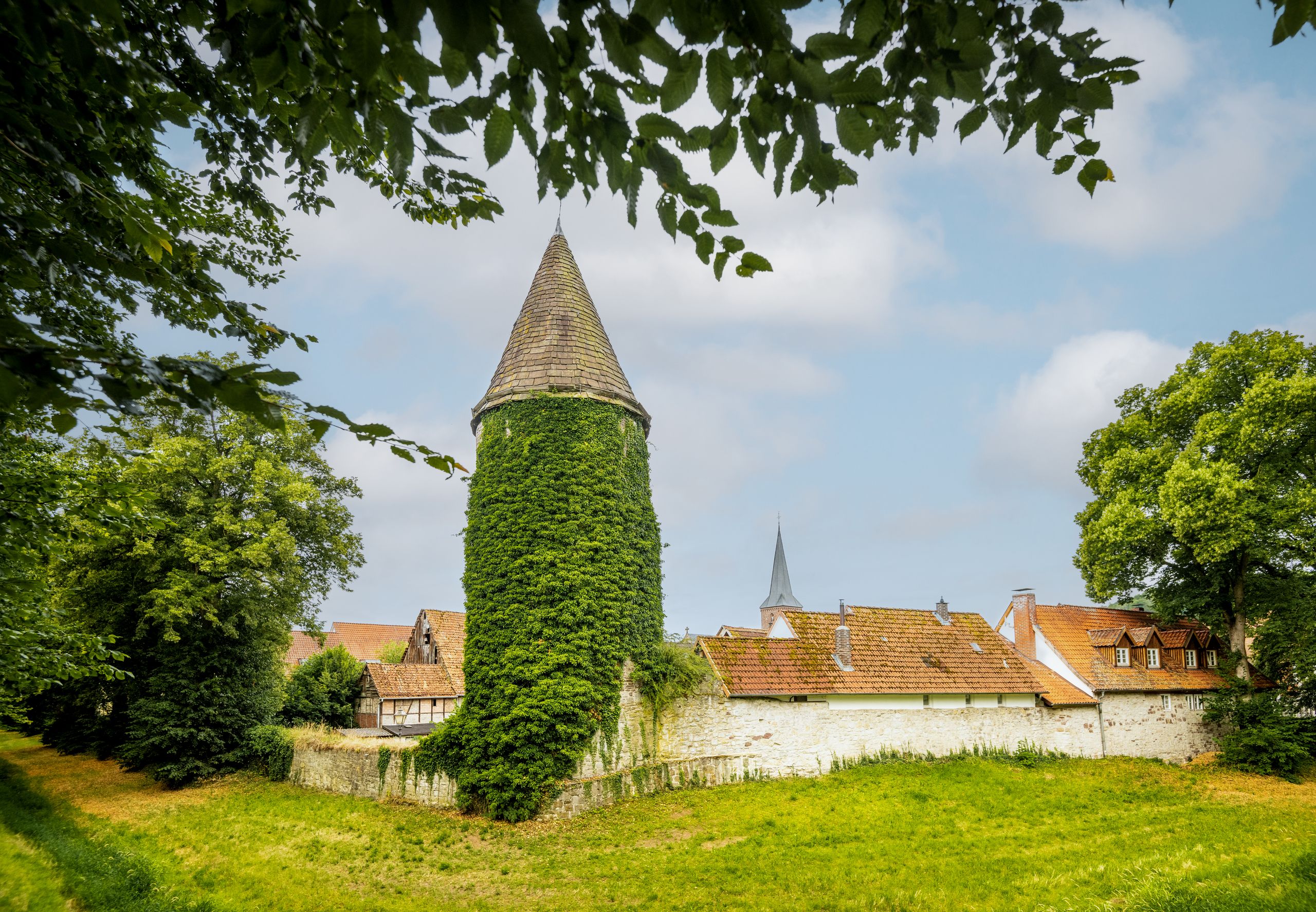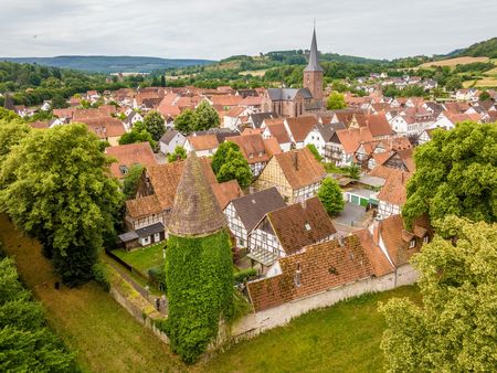 Im Tal lädt der Emmerauenpark mit Spielplätzen, Spazierwegen und Naturbereichen zu Familienzeit und Erholung ein. In der historischen Altstadt trifft man auf liebevoll restaurierte Fachwerkhäuser, eine vollständig erhaltene Stadtmauer mit Wehrtürmen und die romanische Kilianskirche aus dem 12. Jahrhundert – ein besonderer Ort, in dem Karl der Große der Überlieferung nach das Weihnachtsfest gefeiert haben soll.
