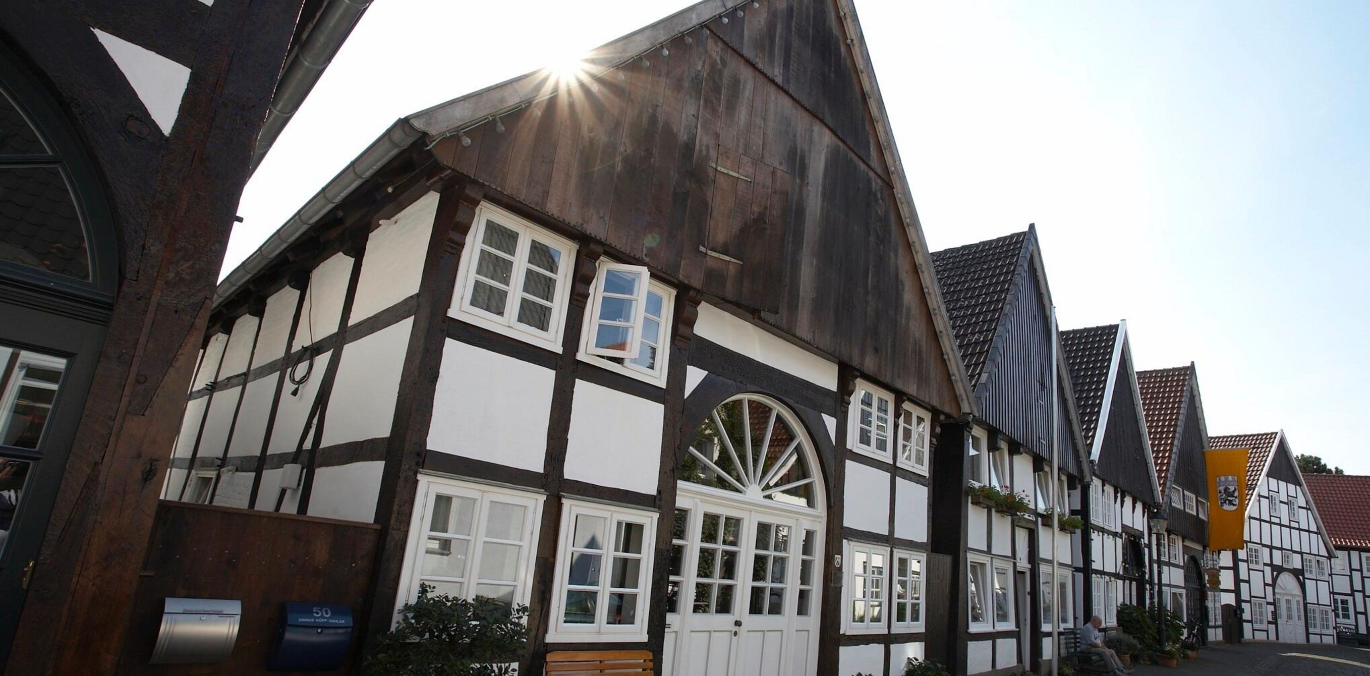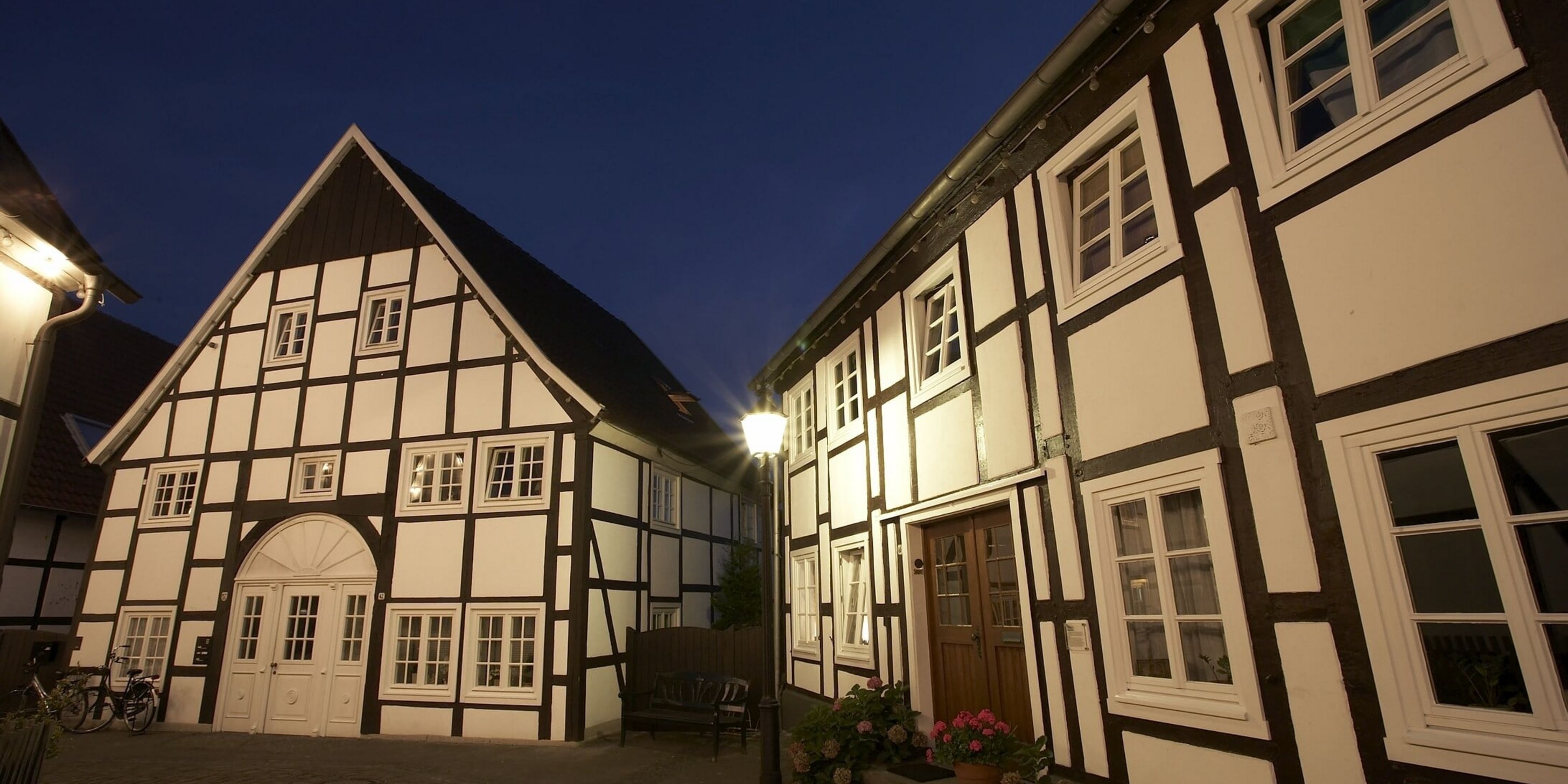 Im Süden des Erfolgskreises Gütersloh in der Urlaubsregion Teutoburger Wald, dort wo sich die Ems durch grüne Auen schlängelt, liegt Rheda‑Wiedenbrück – eine Doppelstadt, in der Fachwerkkunst, Blumenpracht und Lebensfreude das Bild prägen. Zwei historische Stadtkerne mit liebevoll erhaltenen Fachwerkhäusern und lebendigen Plätzen bilden das Zentrum, verbunden durch die weitläufige Flora Westfalica – jenes Gartenschaugelände, das seit 1988 als Natur‑ und Erholungspark beeindruckt.