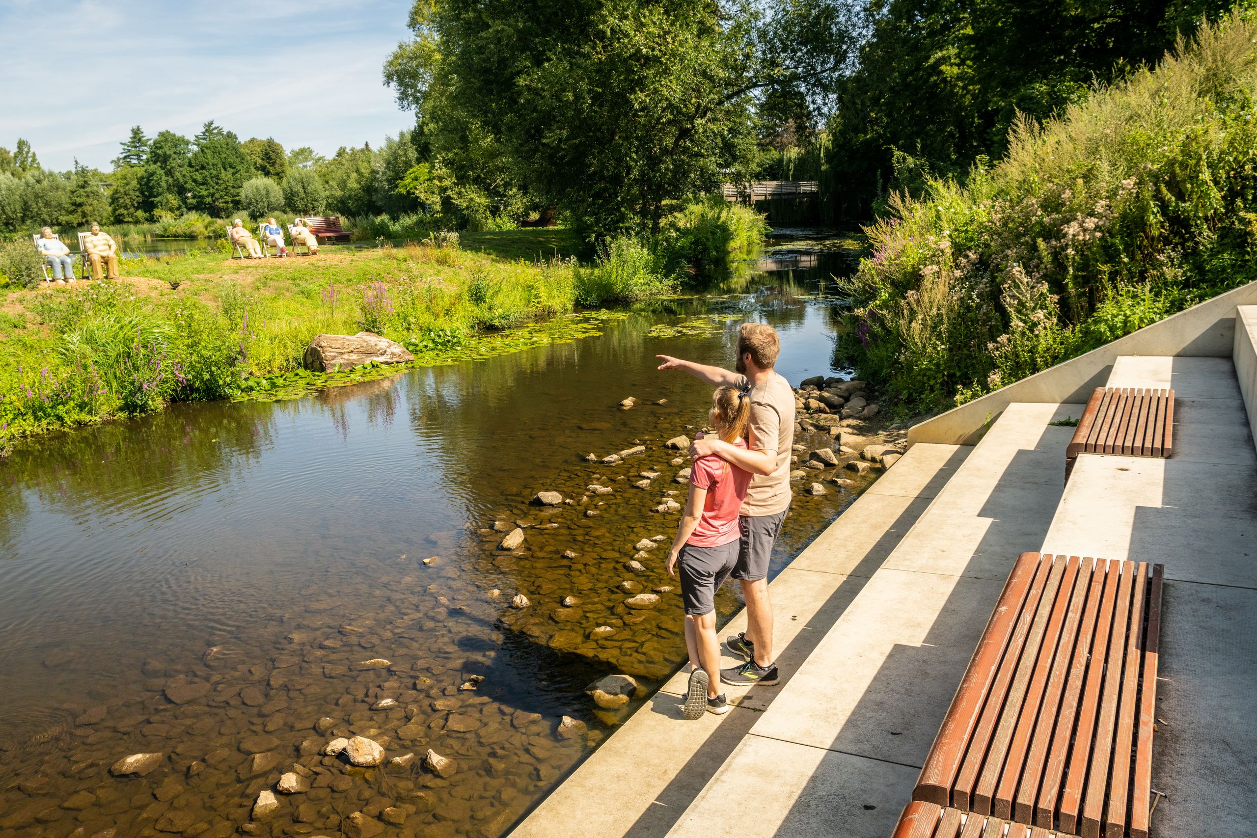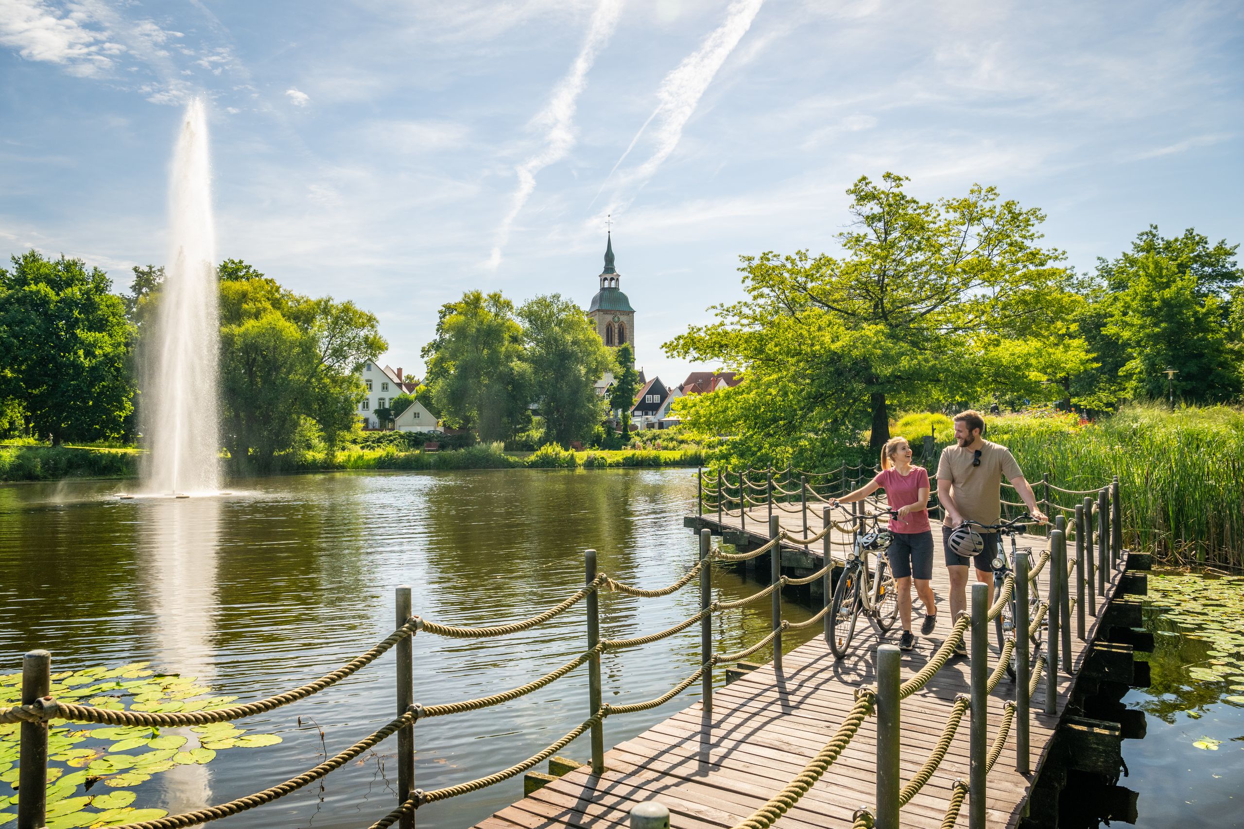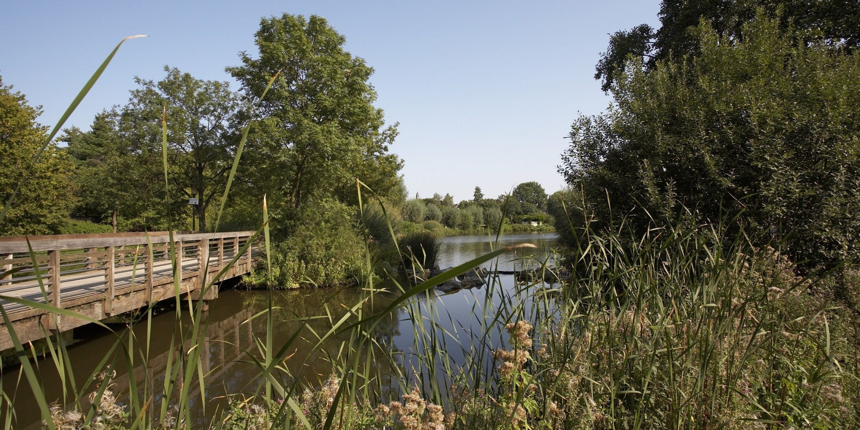 Ein besonders reizvoller Weg, um Park und Stadt zugleich zu erleben, ist die Ems‑Wall‑Promenade – ein ausgezeichneter Wanderweg, der durch den Flora‑Westfalica‑Park und die Altstadt von Wiedenbrück schlängelt. Unterwegs bieten sich immer wieder neue Perspektiven auf Wasser, Fachwerk und Stadtgrün.