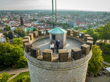 Ein besonderer Höhepunkt der Tour ist die Sparrenburg, ein Wahrzeichen der Stadt. Hier besteht die Möglichkeit, den Turm zu besteigen und einen spektakulären Blick über Bielefeld zu genießen.