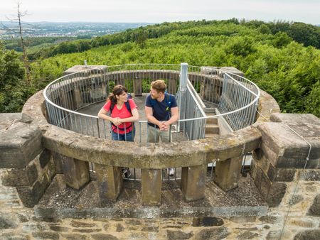 Auf dem Stuckenberg angekommen, besteigen Sie den Herforder Bismarckturm und genießen eine atemberaubende Aussicht über die Hansestadt und die umliegende Region – ein perfekter Start in den Tag!