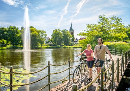 Radeln an sanften Flussläufen, malerischen Uferlandschaften und glitzernden Seen – ob entlang bekannter Highlights wie den Flüssen Ems und Weser oder Geheimtipps wie die Sennebäche und Alme. Diese Fahrradtouren am Wasser bieten Ihnen Erholung inmitten vielfältiger Naturparadiese während die frische Brise an heißen Sommertagen für Abkühlung sorgt. Wir zeigen Ihnen die schönsten Flussradwege und Radtouren entlang Seen in der Urlaubs- und Freizeitregion Teutoburger Wald, NRW. Schwingen Sie sich auf den Sattel und begeben Sie sich auf Ihr nächstes Radabenteuer!